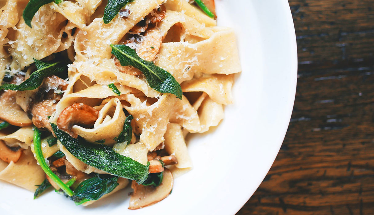 Learn MorePenne Pasta with Sauce and peas